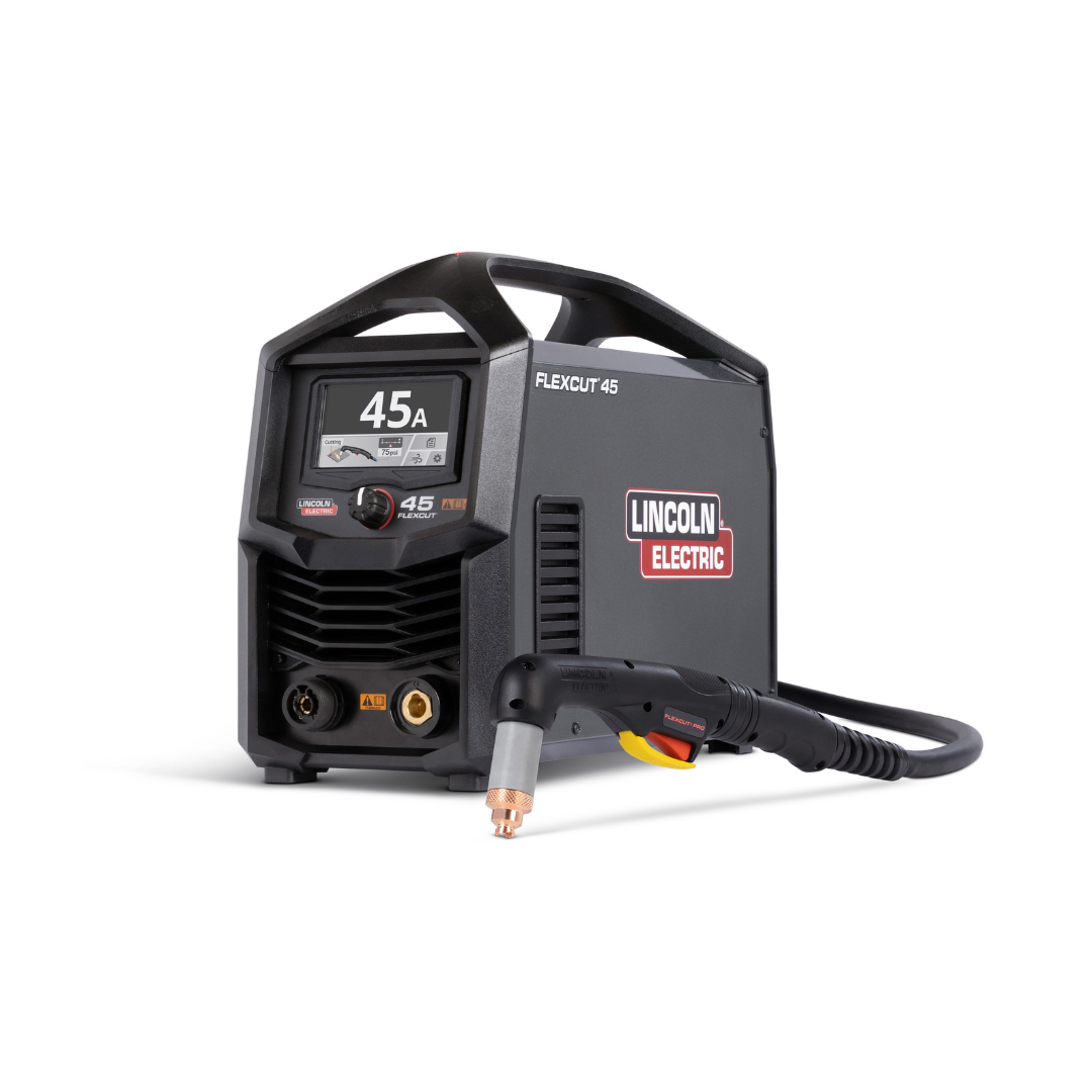 The FlexCut 45 plasma cutter comes with everything needed to handhold plasma cut mild steel, aluminum, or stainless steel.